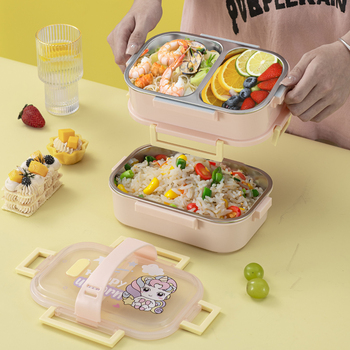 Caja Bento de acero inoxidable 304 para niños al por mayor, contenedor de almacenamiento de alimentos con melodía, fiambrera portátil con aislamiento de agua caliente